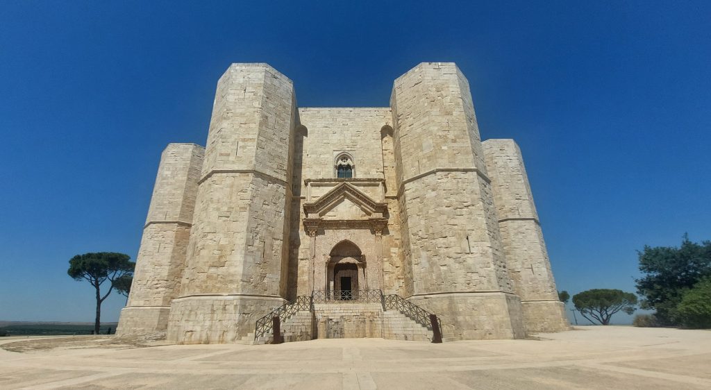 Die Festung Castel del Monte in Apulien wurde als einzigartiges Meisterwerk der mittelalterlichen Architektur. Sie ist ein Bauwerk aus der Zeit des staufischen Kaisers Friedrich II. und wurde von 1240 bis um 1250 errichtet, wahrscheinlich aber nie vollendet. Seit 1996 ist das Bauwerk UNESCO Welterbestätte.