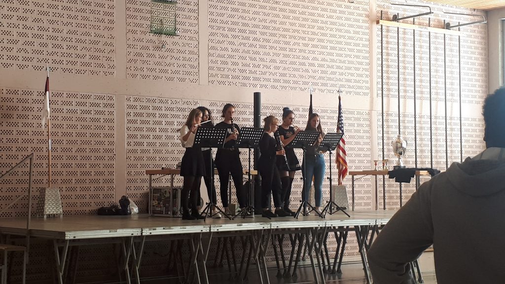 Zunächst hatten sich die „Wood and Brass Sisters“ unserer Schule dazu bereit erklärt, die Veranstaltung mit drei wunderbar vorgetragenen Stücken zu eröffnen. Nach einer kurzen Eröffnungsrede vom amerikanischen First Sergeant des Gastgebers, der 30th Medical Brigade, ging es dann auch schon gleich ans Eingemachte.
